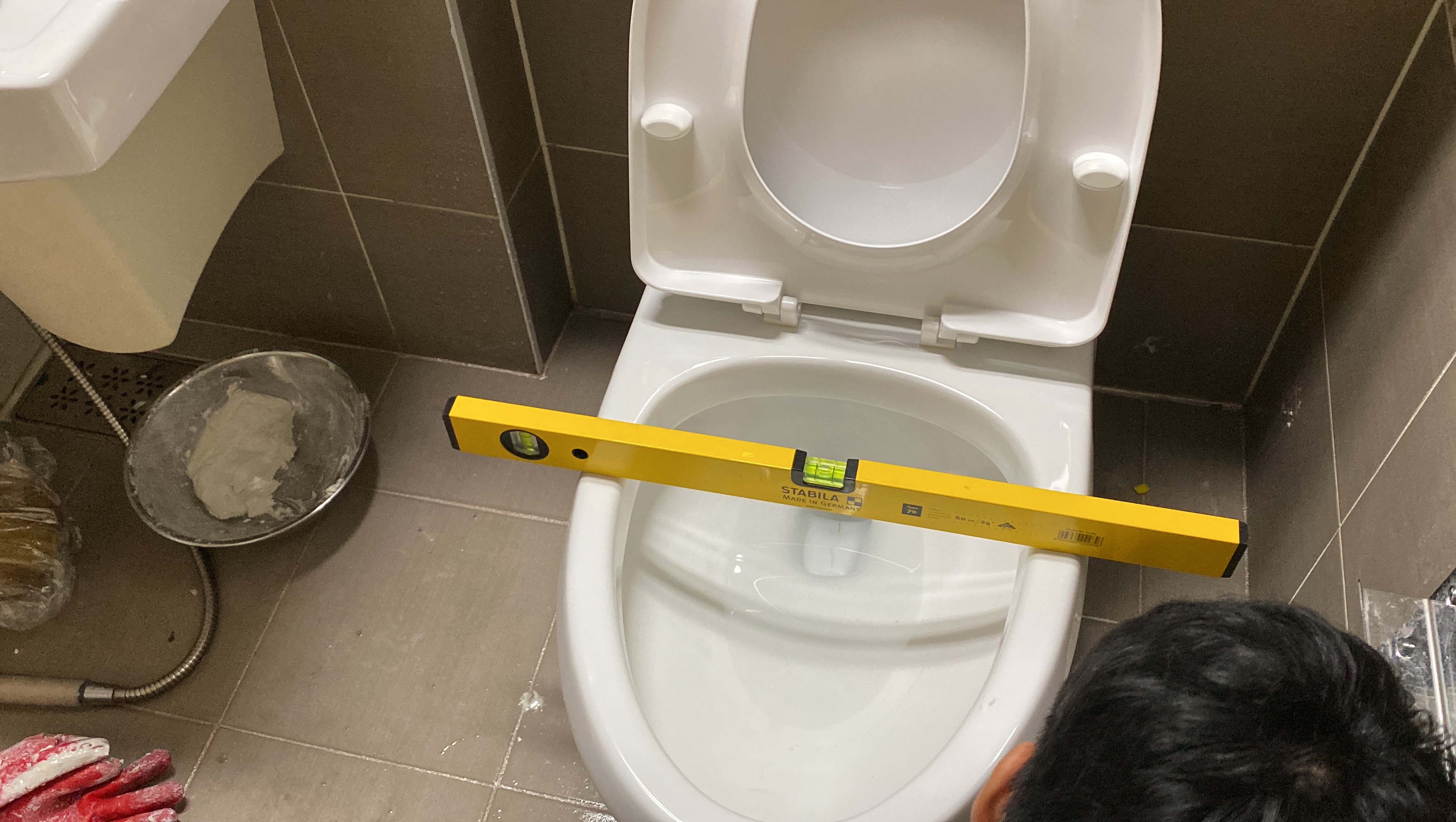- 배수구 위치 확인 후 변기를 정밀하게 맞춤
